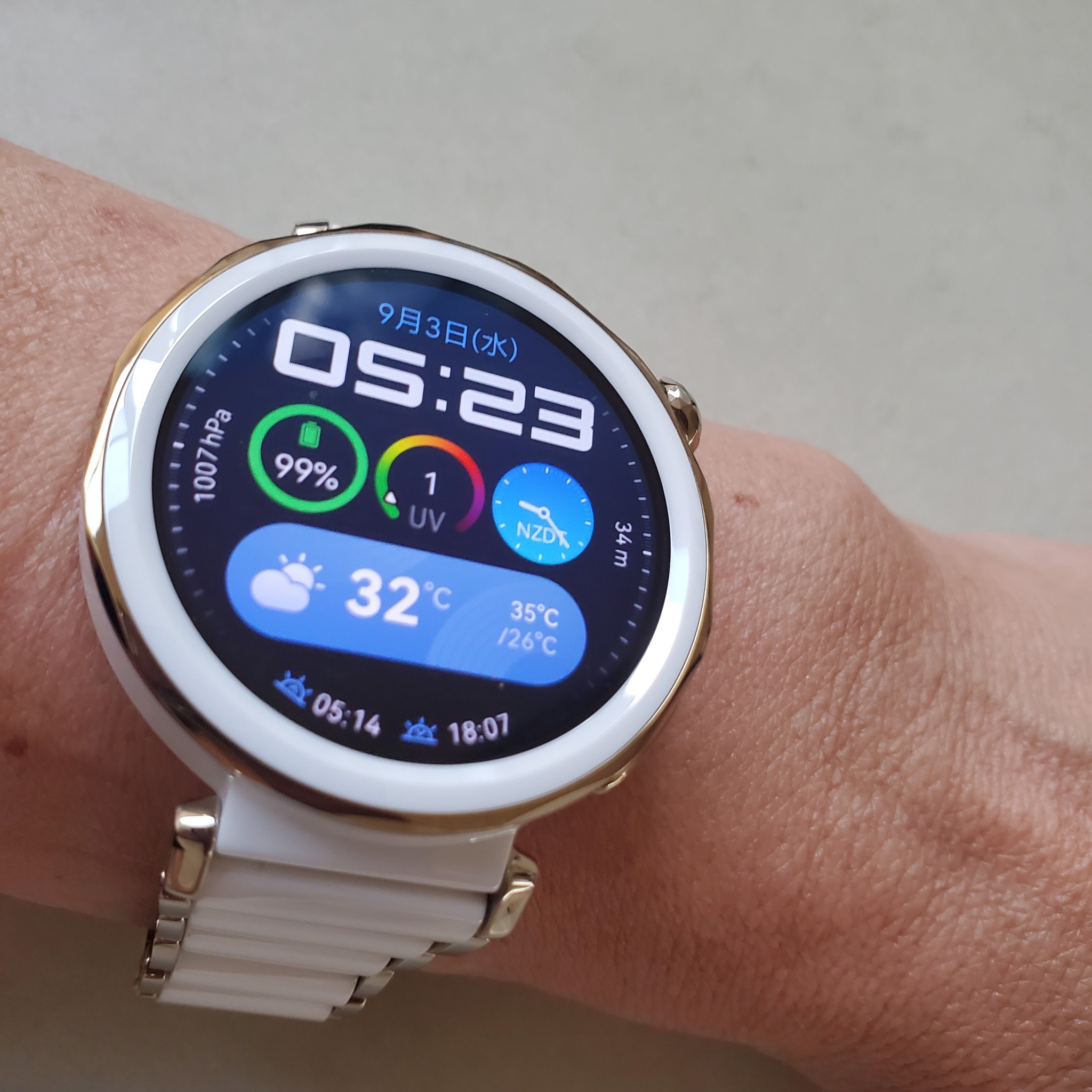どんなスマートウォッチにしようか、私の欲しい機能を求めていったら、これに行き着きました。心房細動が測れて、通知通話の機能、ゴルフのコース攻略機能があって、ヘルスケアがあって、ランのお供に、、と。